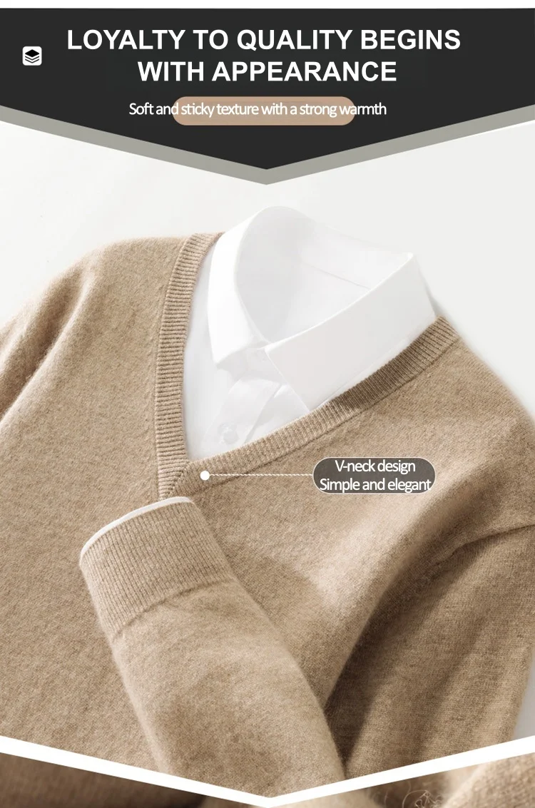 Basic Autumn Winter Men Sweater Classic 100% Cashmere Knitwear Smart Casual Pullover Solid Long Sleeve Clothing Tops Man Jumper