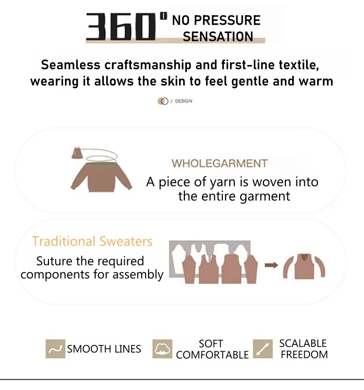 The sweater is made of a single thread, without any joints, it is very soft, comfortable, and high-end.